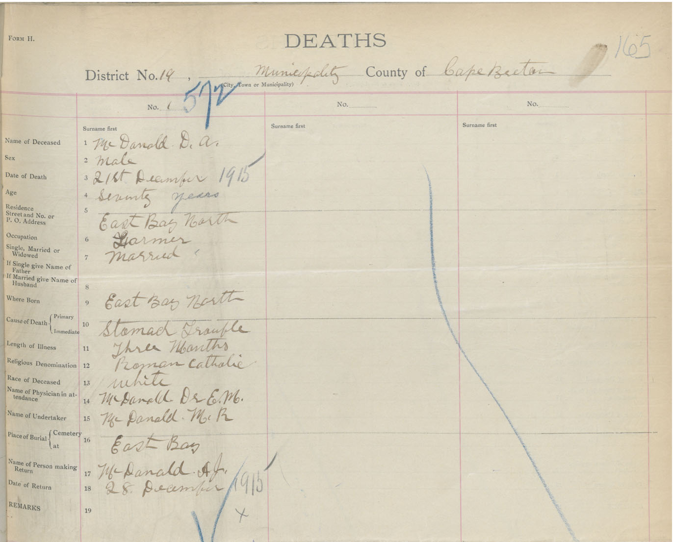 Male Death Registration: Year: 1915 book: 28 page: 165 number: 572