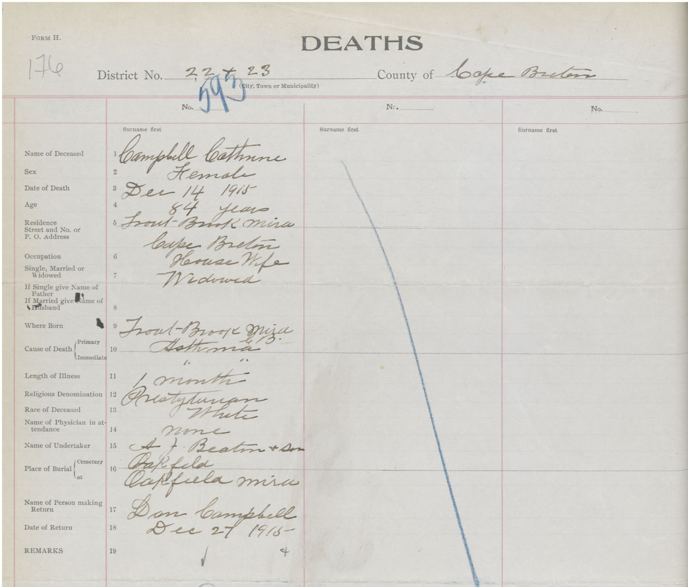 Death Registration: Year: 1915 book: 28 page: 176 number: 593