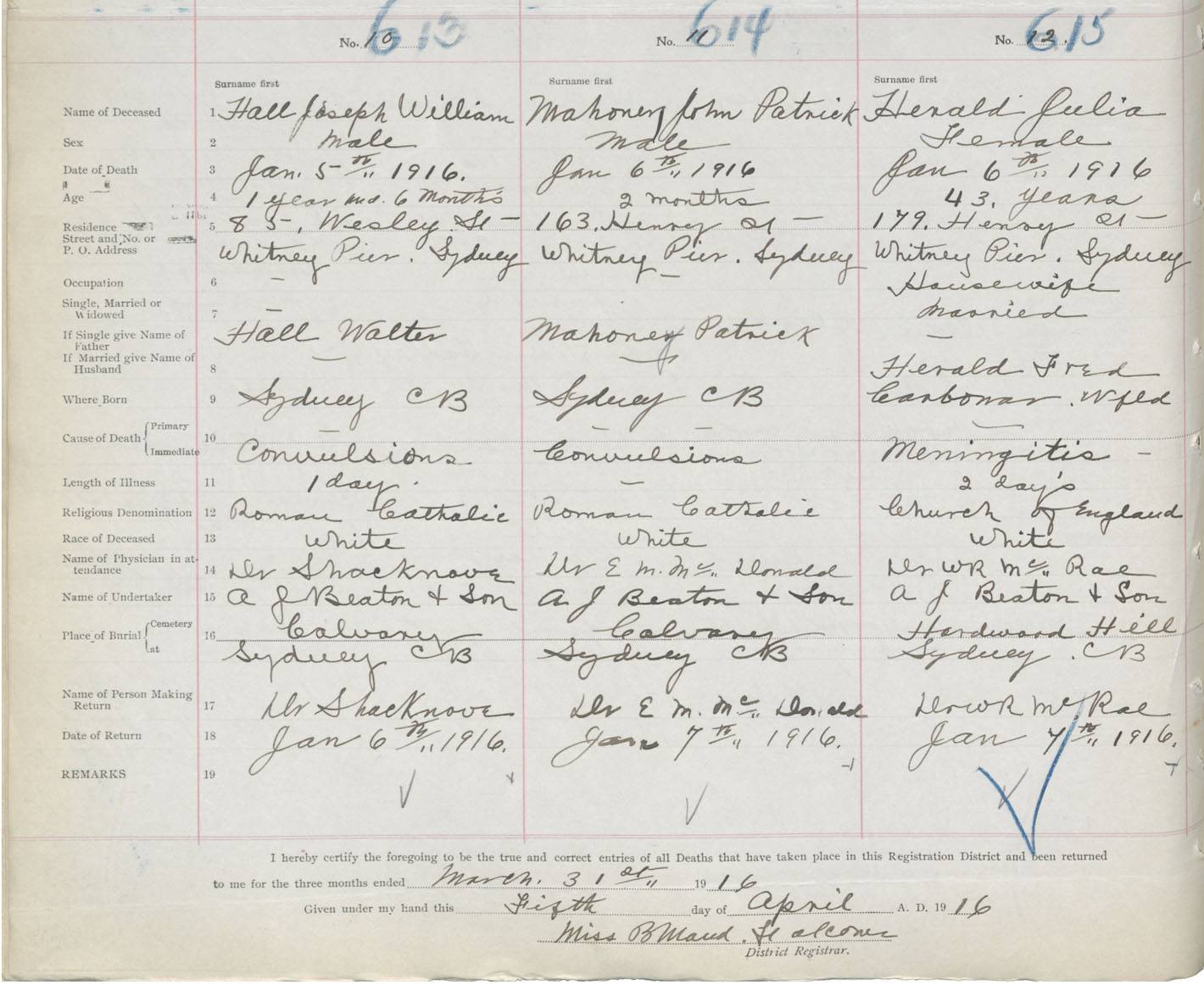 Death Registration: Year: 1916 book: 28 page: 182 number: 615
