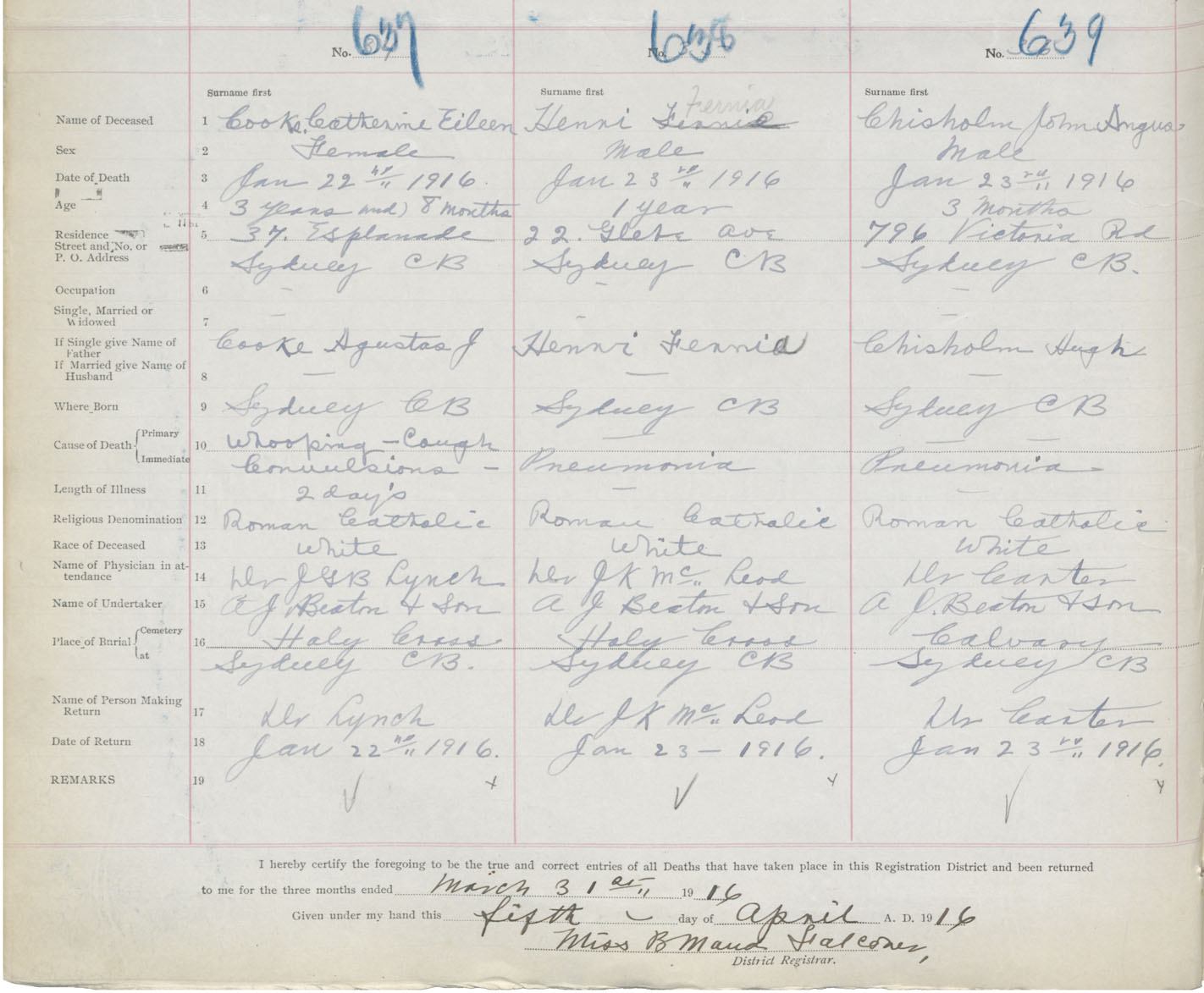 Death Registration: Year: 1916 book: 28 page: 186 number: 639