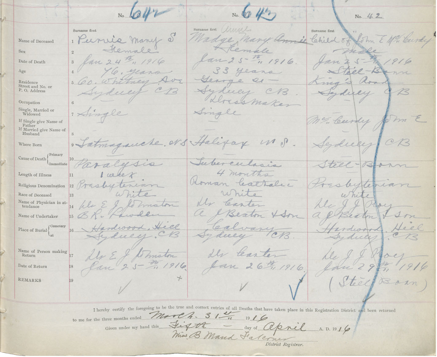 Death Registration: Year: 1916 book: 28 page: 187 number: 643