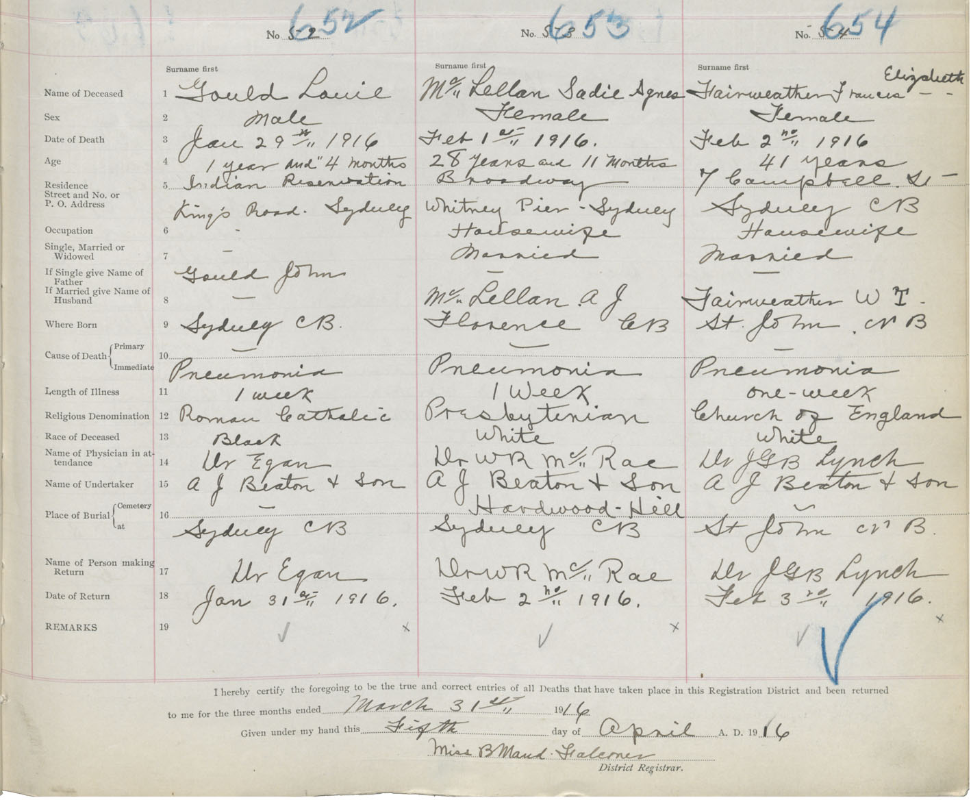 Death Registration: Year: 1916 book: 28 page: 189 number: 654