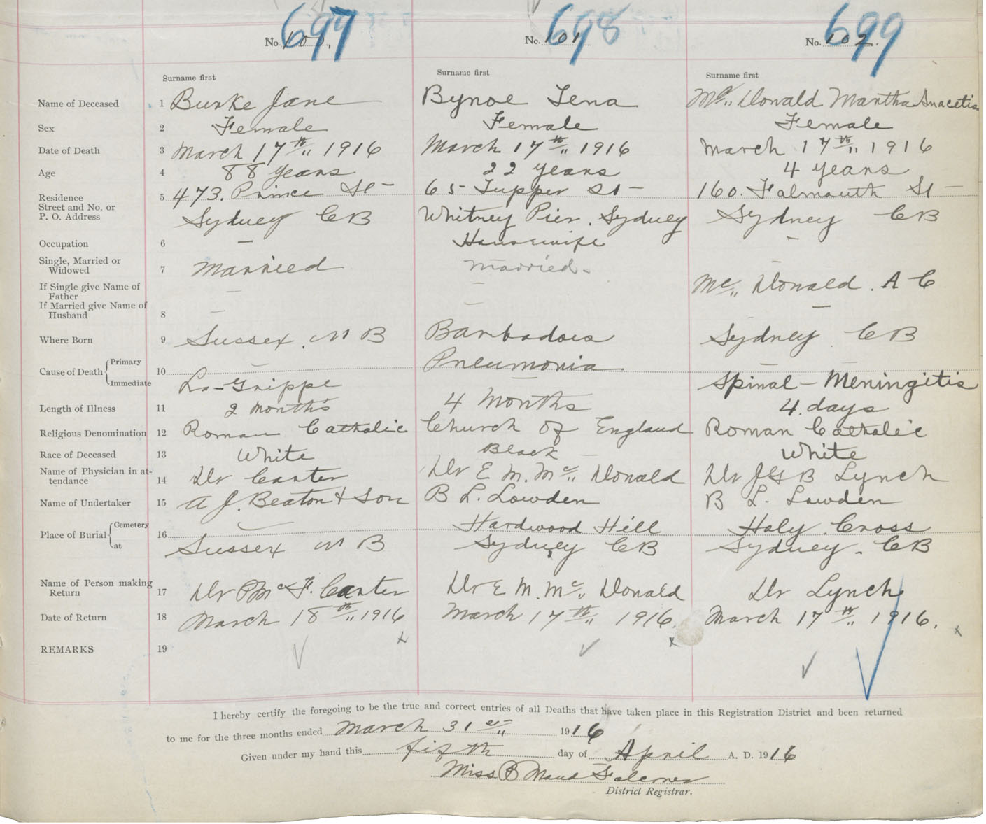 Death Registration: Year: 1916 book: 28 page: 197 number: 699