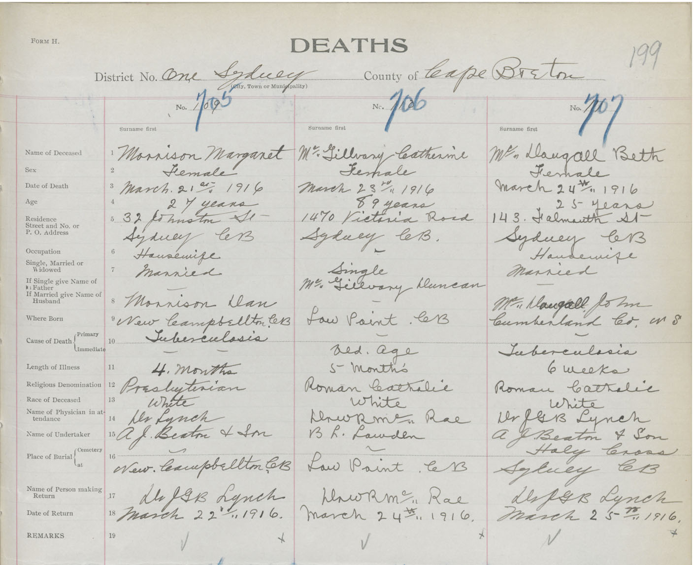 Death Registration: Year: 1916 book: 28 page: 199 number: 707