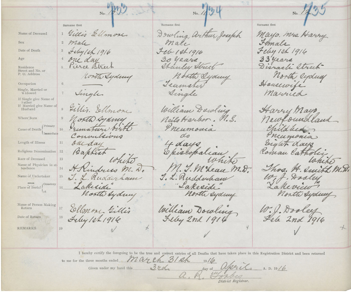 Death Registration: Year: 1916 book: 28 page: 206 number: 735