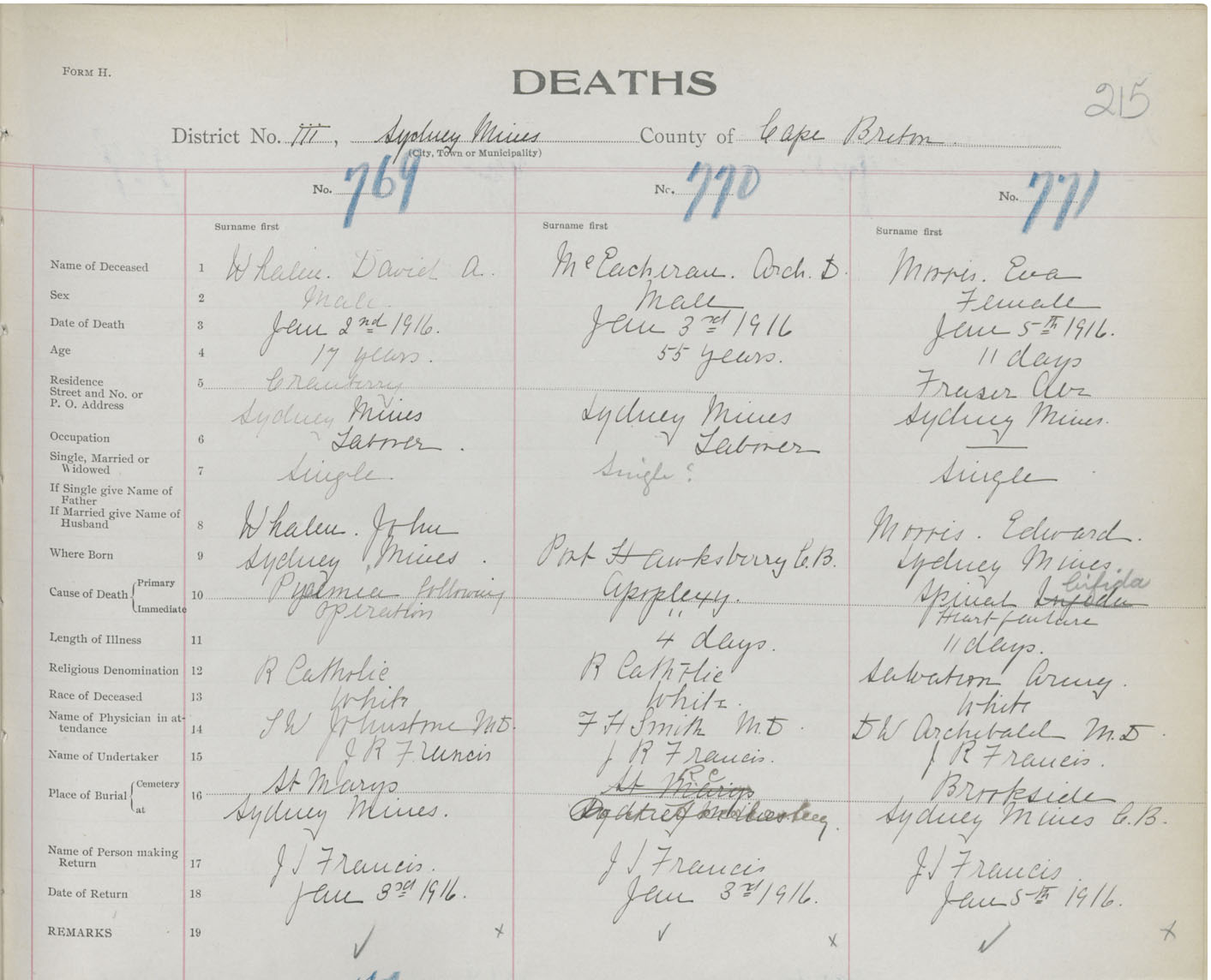 Death Registration: Year: 1916 book: 28 page: 215 number: 771