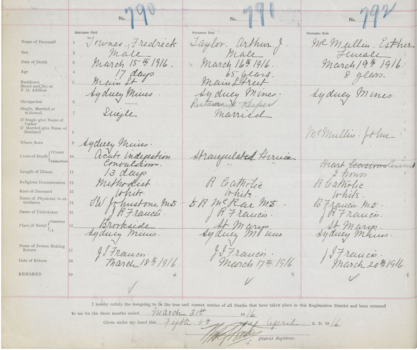 Death Registration: Year: 1916 book: 28 page: 218 number: 792