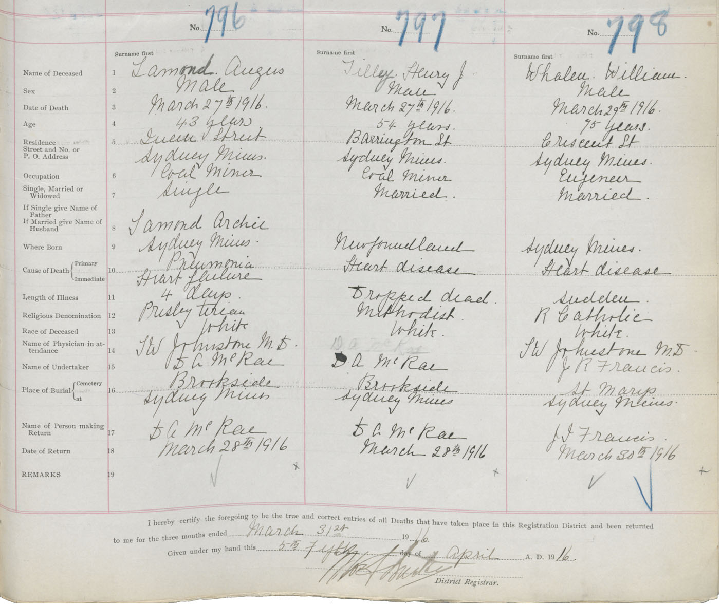 Death Registration: Year: 1916 book: 28 page: 219 number: 798