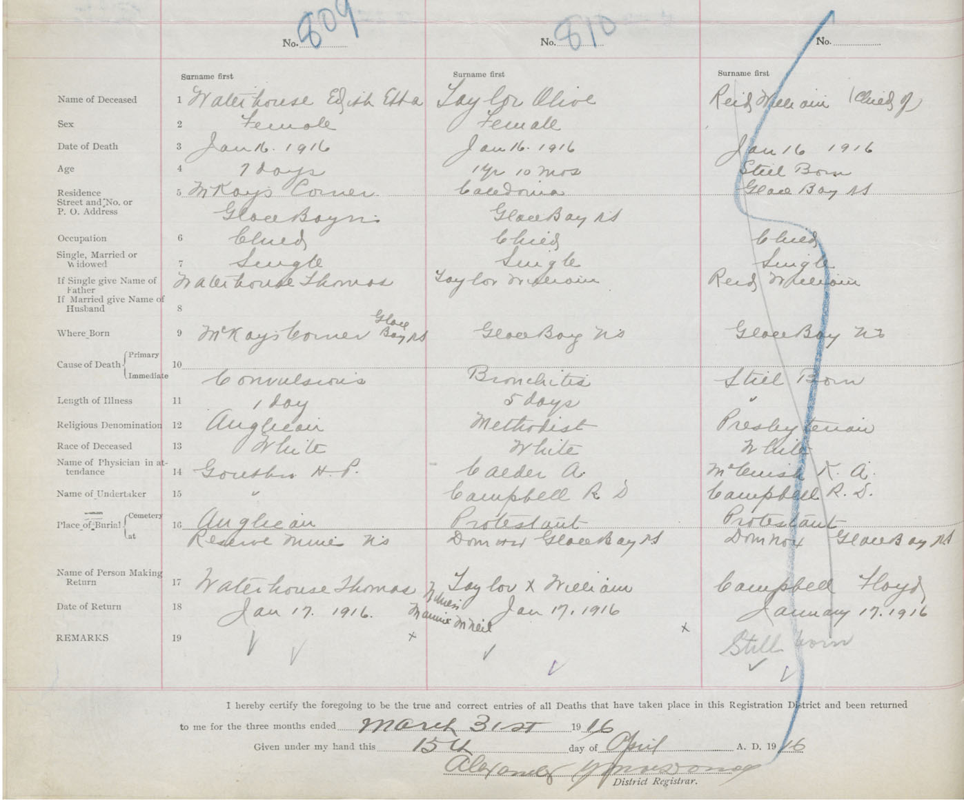 Death Registration: Year: 1916 book: 28 page: 222 number: 810