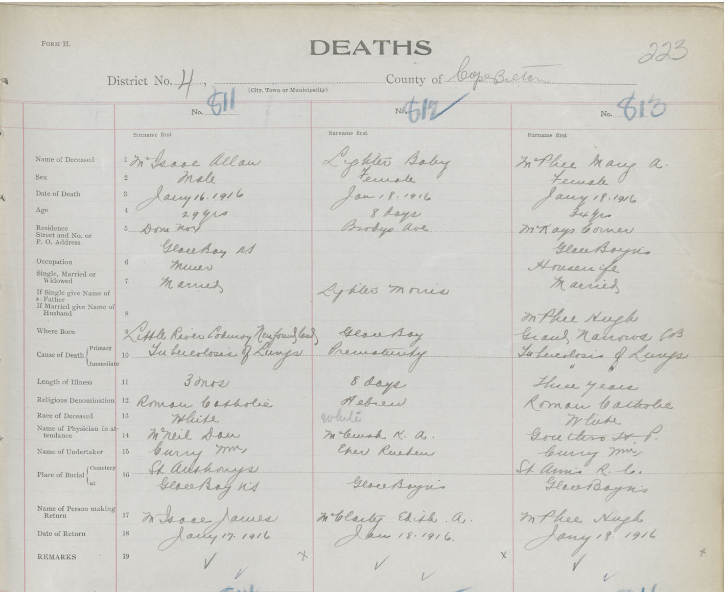 Death Registration: Year: 1916 book: 28 page: 223 number: 813
