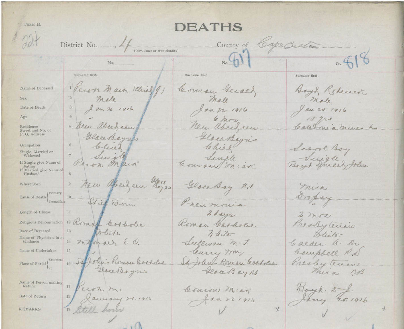 Death Registration: Year: 1916 book: 28 page: 224 number: 818