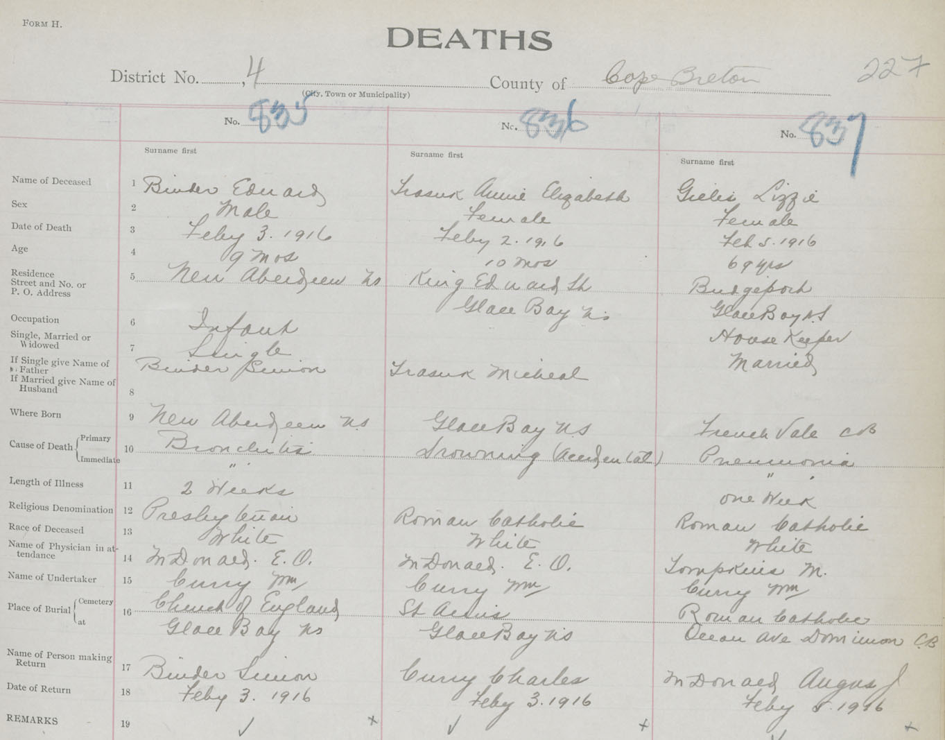 Death Registration: Year: 1916 book: 28 page: 227 number: 837