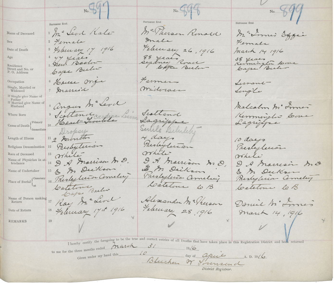 Death Registration: Year: 1916 book: 28 page: 241 number: 897