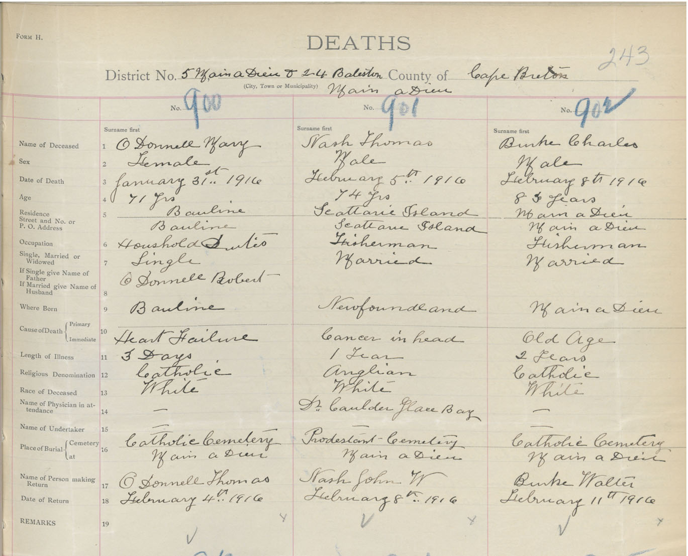 Death Registration: Year: 1916 book: 28 page: 243 number: 900