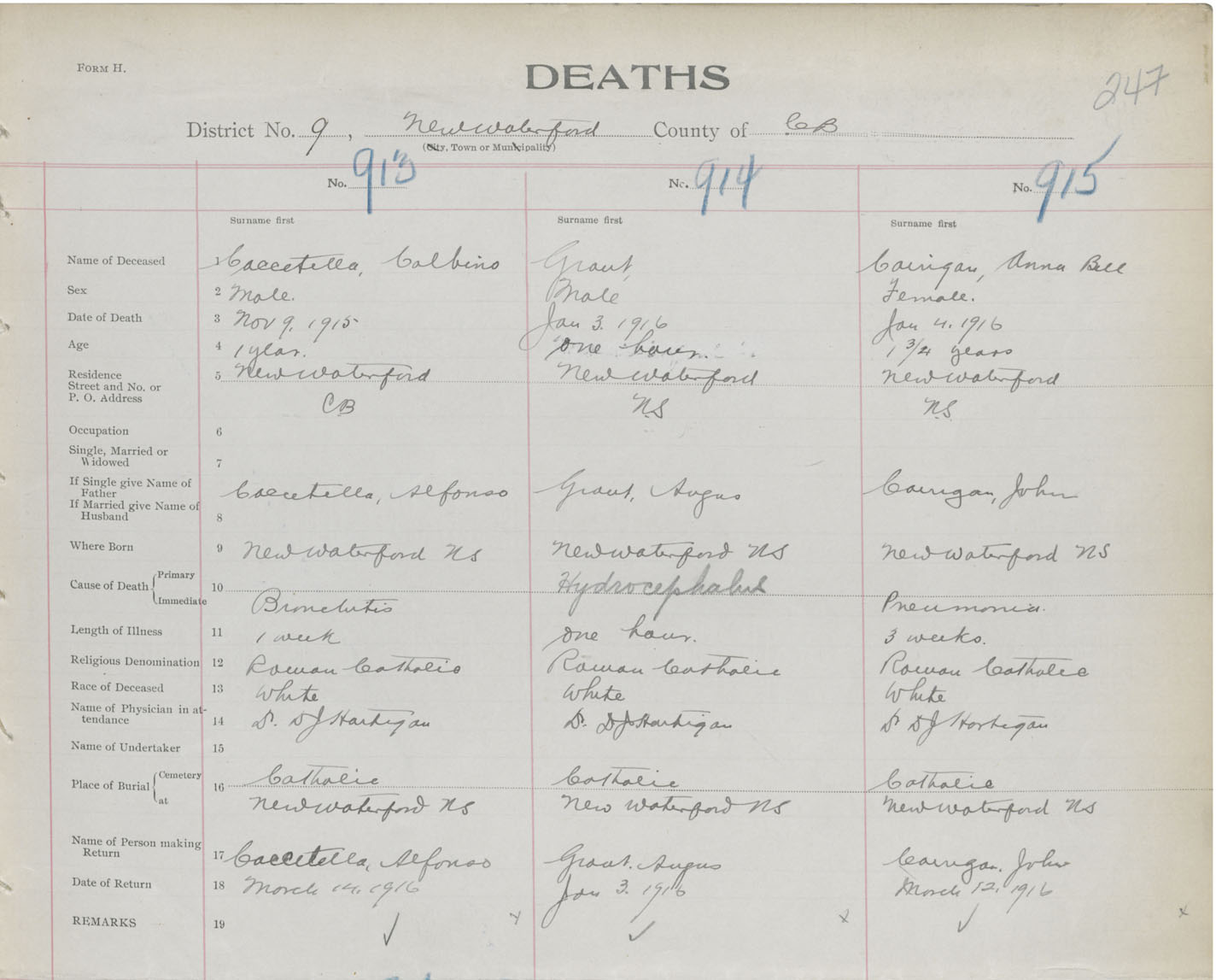 Death Registration: Year: 1916 book: 28 page: 247 number: 913
