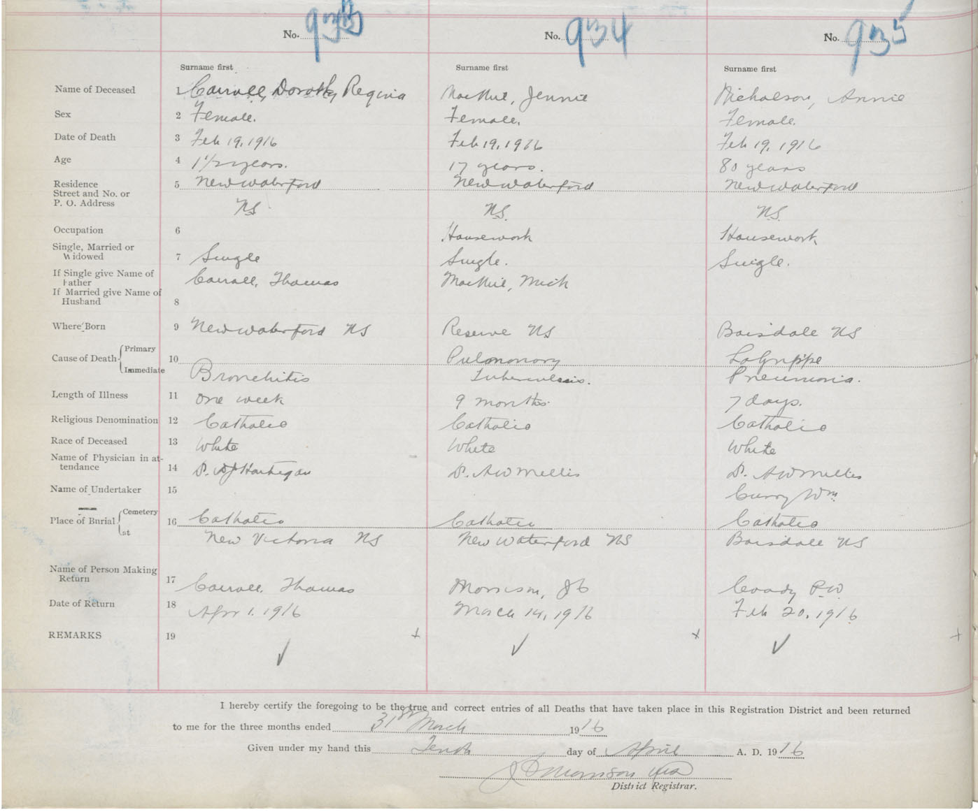Death Registration: Year: 1916 book: 28 page: 250 number: 933