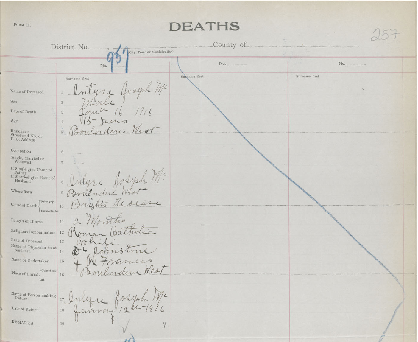 Death Registration: Year: 1916 book: 28 page: 257 number: 957