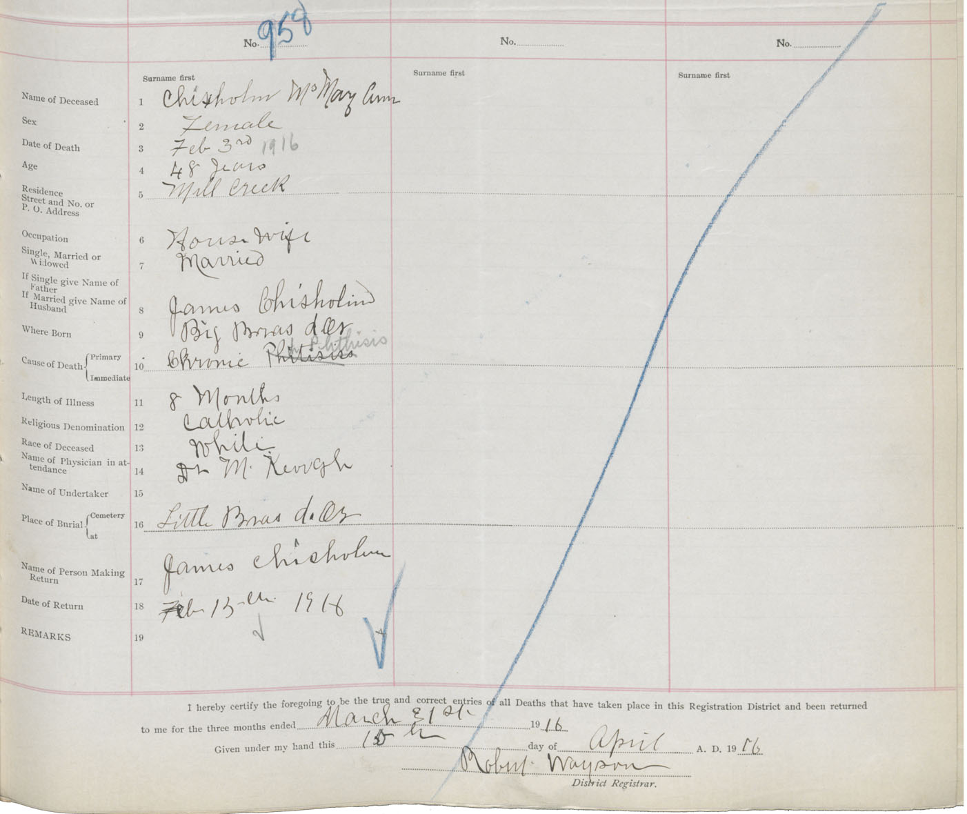 Death Registration: Year: 1916 book: 28 page: 257 number: 958