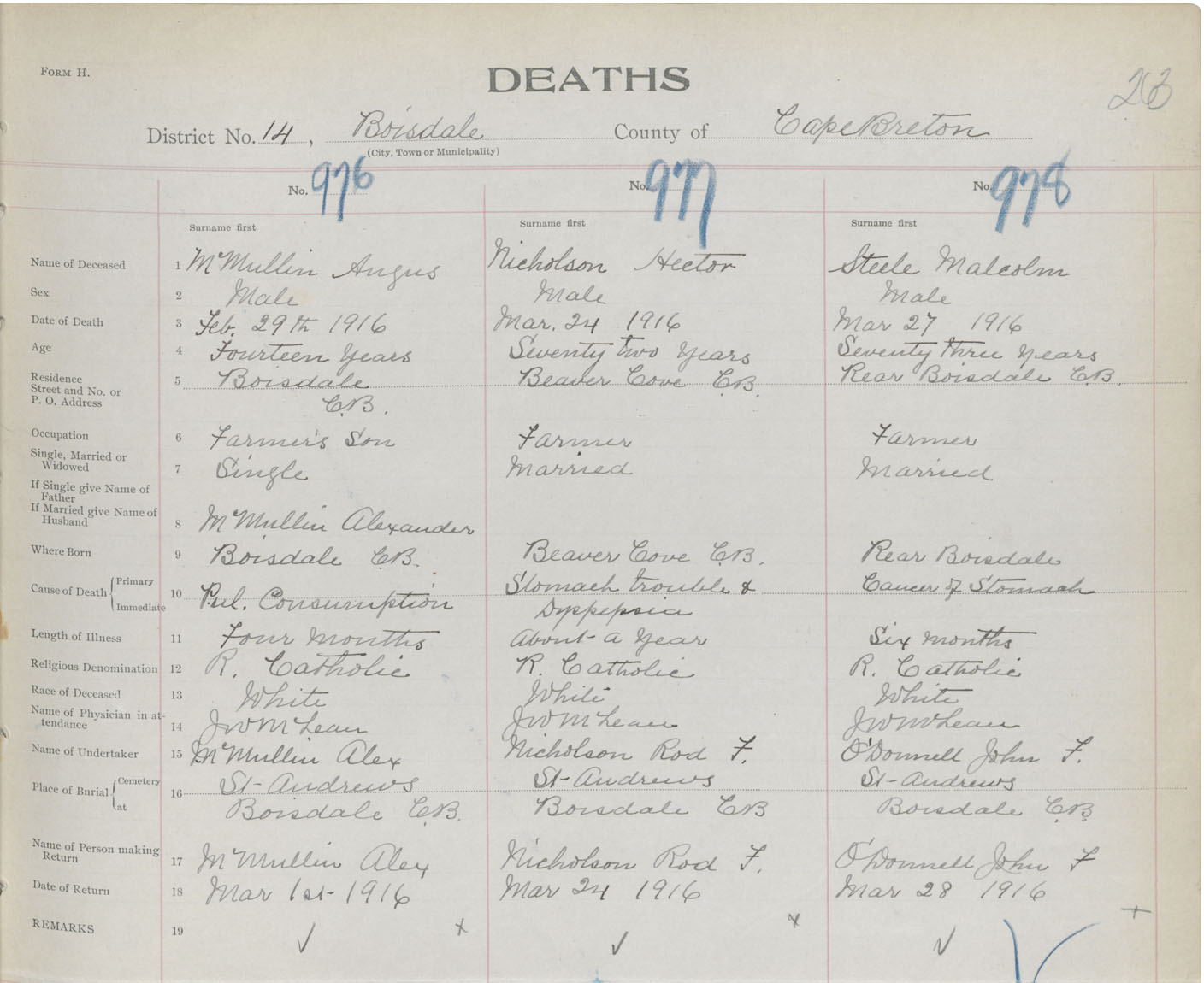 Death Registration: Year: 1916 book: 28 page: 263 number: 976