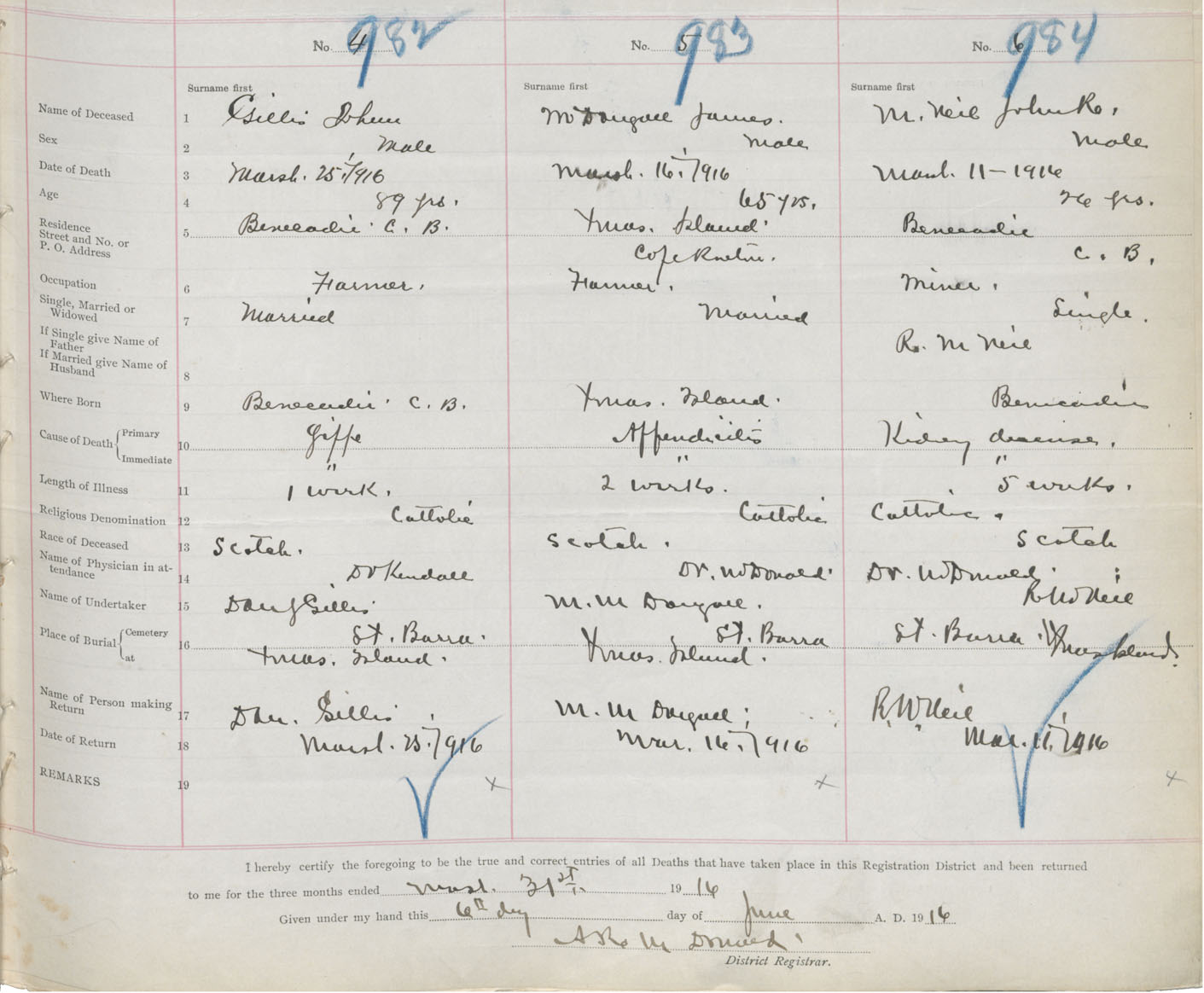 Death Registration: Year: 1916 book: 28 page: 265 number: 982