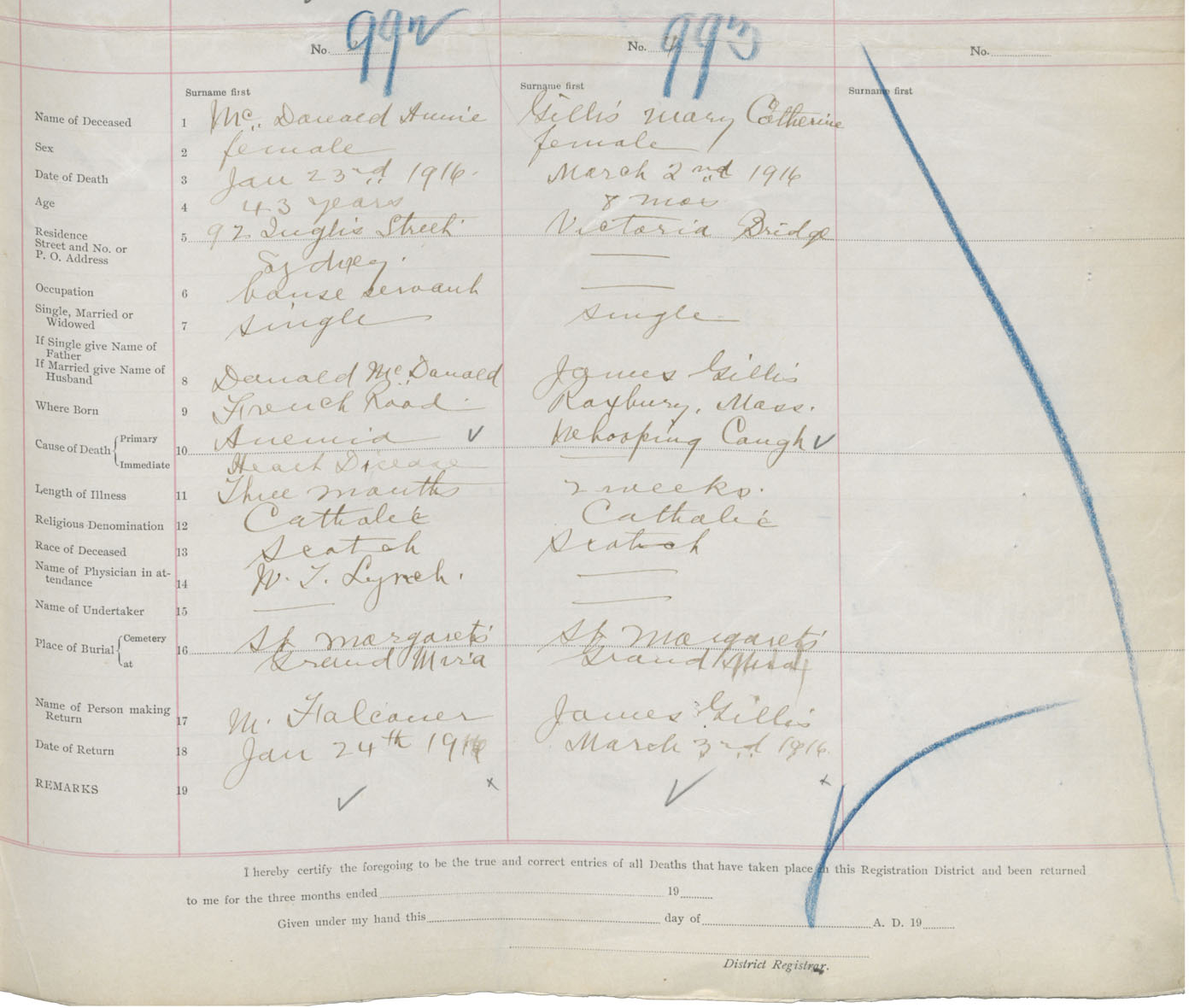 Death Registration: Year: 1916 book: 28 page: 269 number: 992