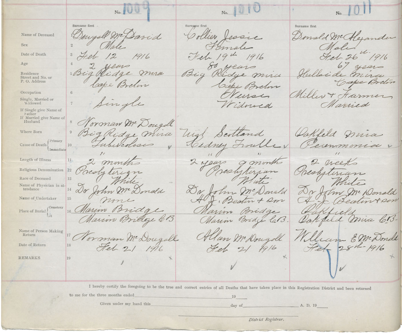 Death Registration: Year: 1916 book: 28 page: 274 number: 1009