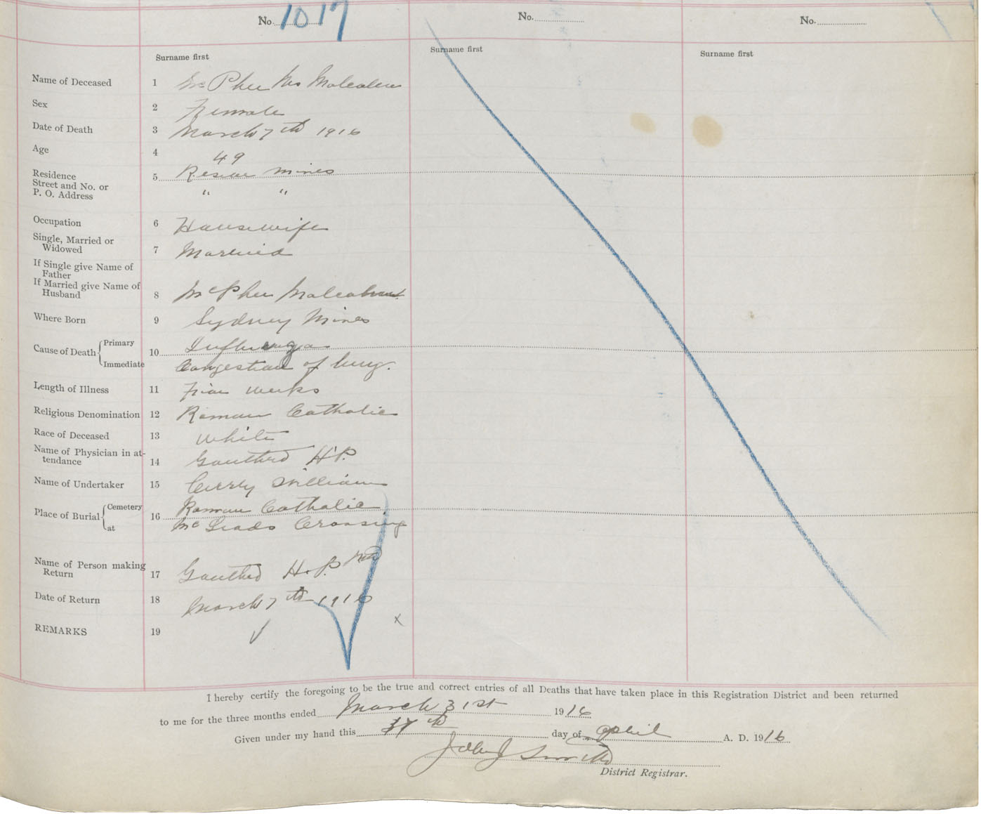 Death Registration: Year: 1916 book: 28 page: 277 number: 1017