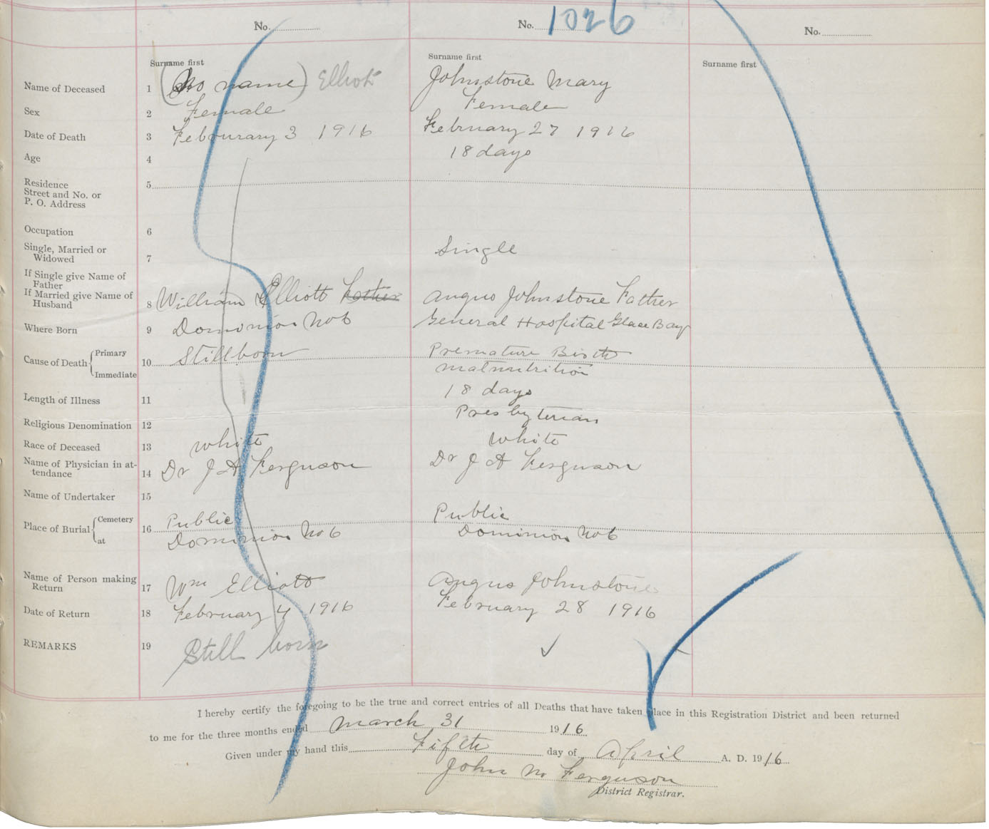 Death Registration: Year: 1916 book: 28 page: 281 number: 1026