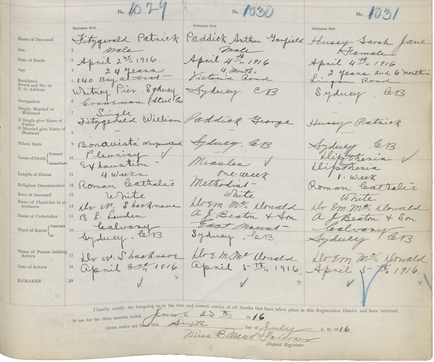 Death Registration: Year: 1916 book: 28 page: 283 number: 1031