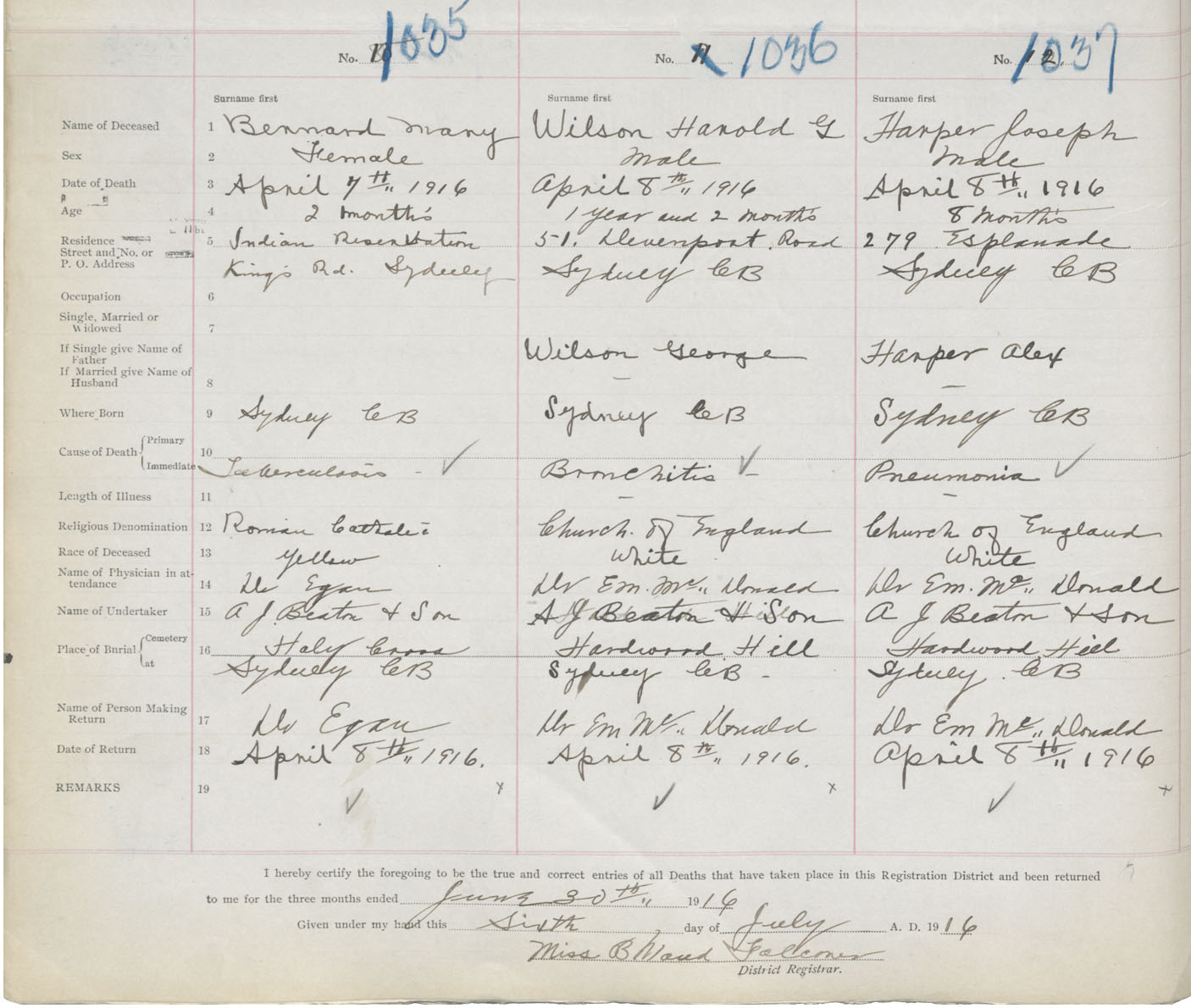Death Registration: Year: 1916 book: 28 page: 284 number: 1037