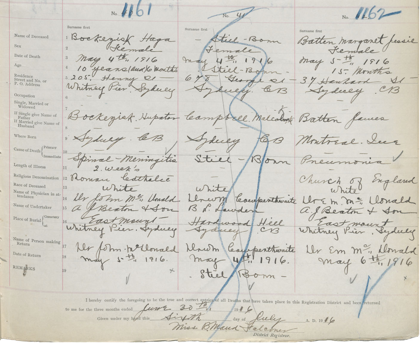 Death Registration: Year: 1916 book: 28 page: 289 number: 1162