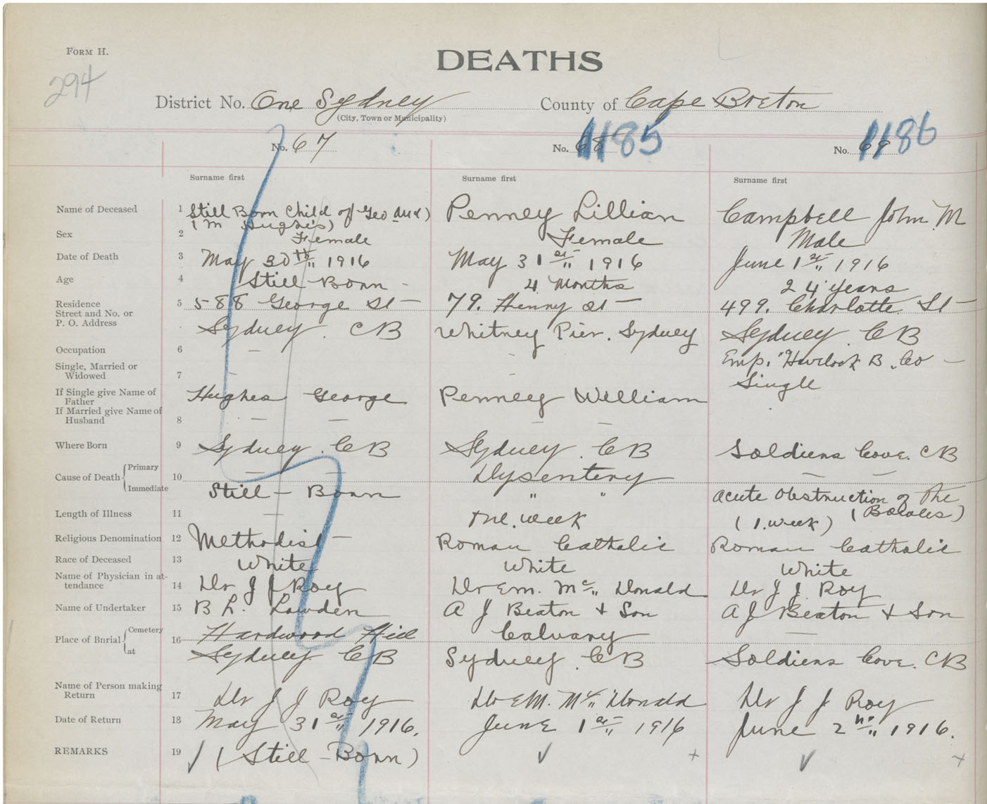Death Registration: Year: 1916 book: 28 page: 294 number: 1186