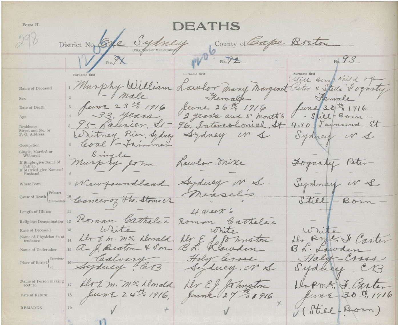 Death Registration: Year: 1916 book: 28 page: 298 number: 1206
