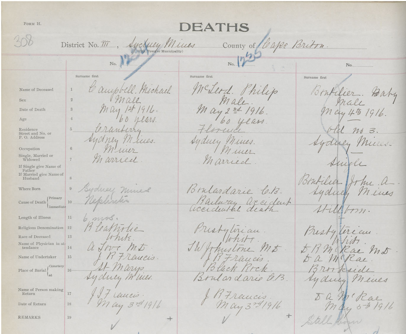 Death Registration: Year: 1916 book: 28 page: 308 number: 1235