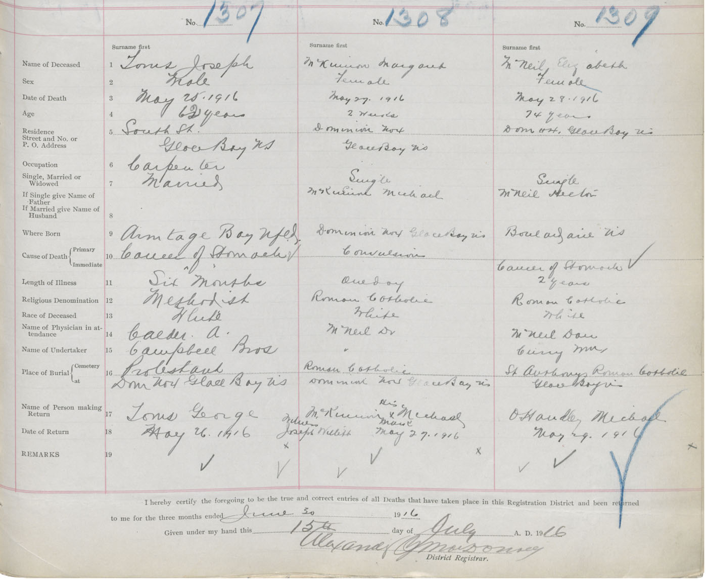 Death Registration: Year: 1916 book: 28 page: 317 number: 1307