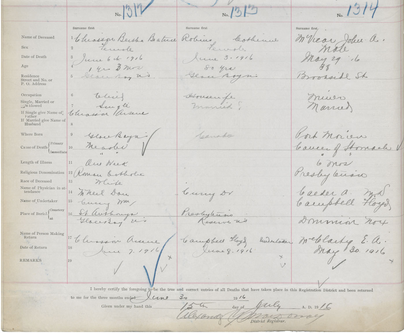 Death Registration: Year: 1916 book: 28 page: 318 number: 1312