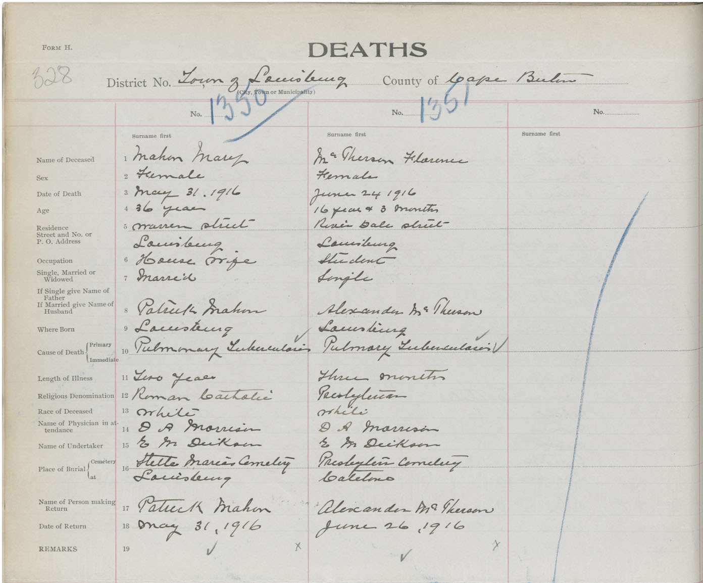 Death Registration: Year: 1916 book: 28 page: 328 number: 1350