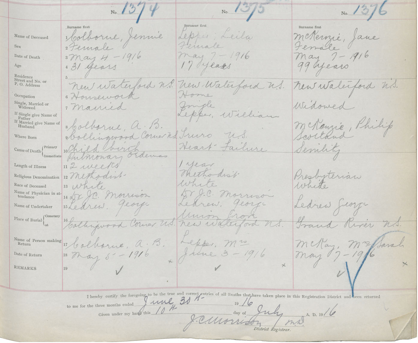 Death Registration: Year: 1916 book: 28 page: 337 number: 1376