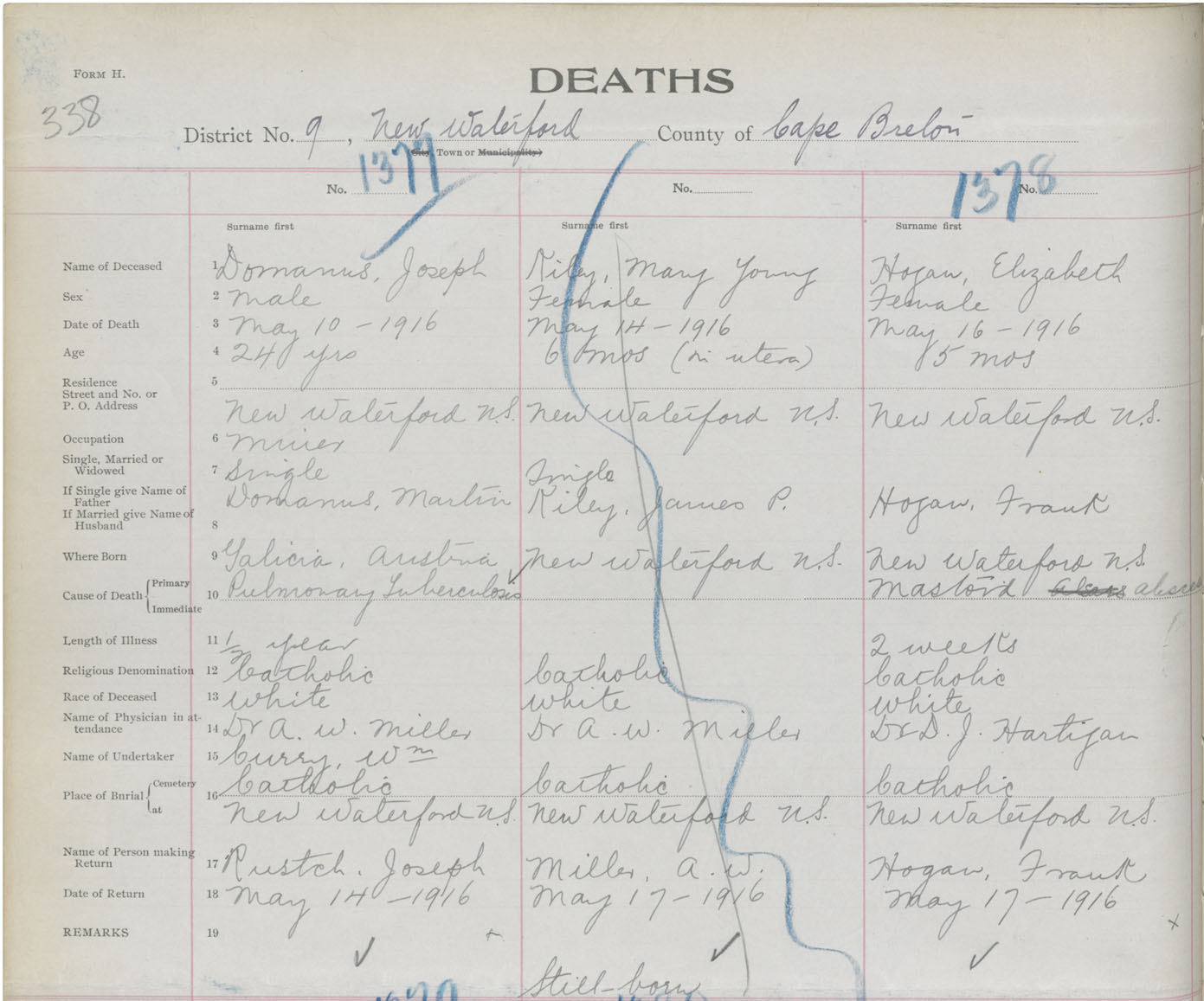 Death Registration: Year: 1916 book: 28 page: 338 number: 1378