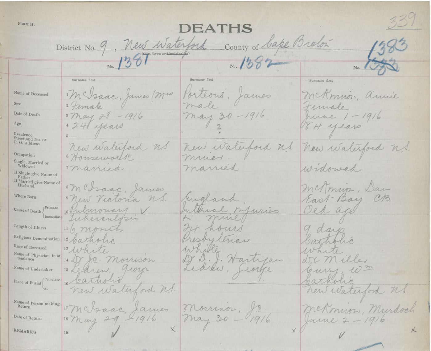 Death Registration: Year: 1916 book: 28 page: 339 number: 1383
