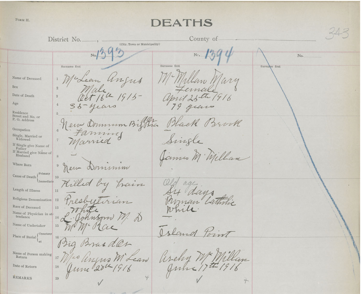 Death Registration: Year: 1916 book: 28 page: 343 number: 1394