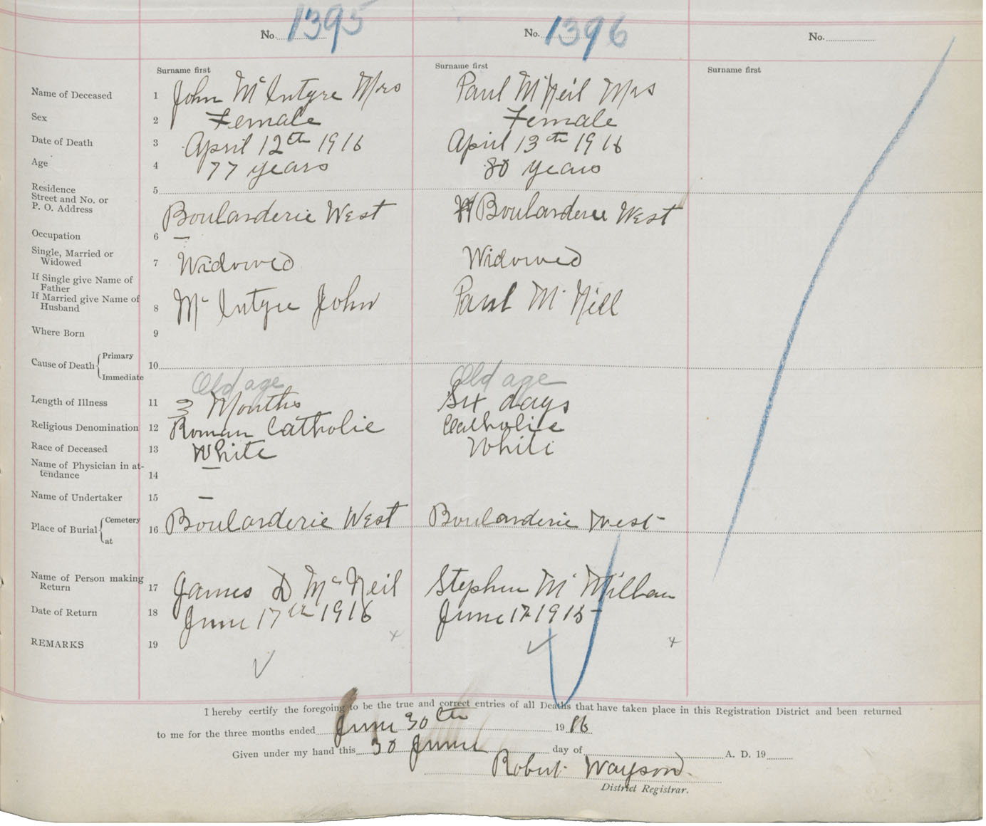 Death Registration: Year: 1916 book: 28 page: 343 number: 1396