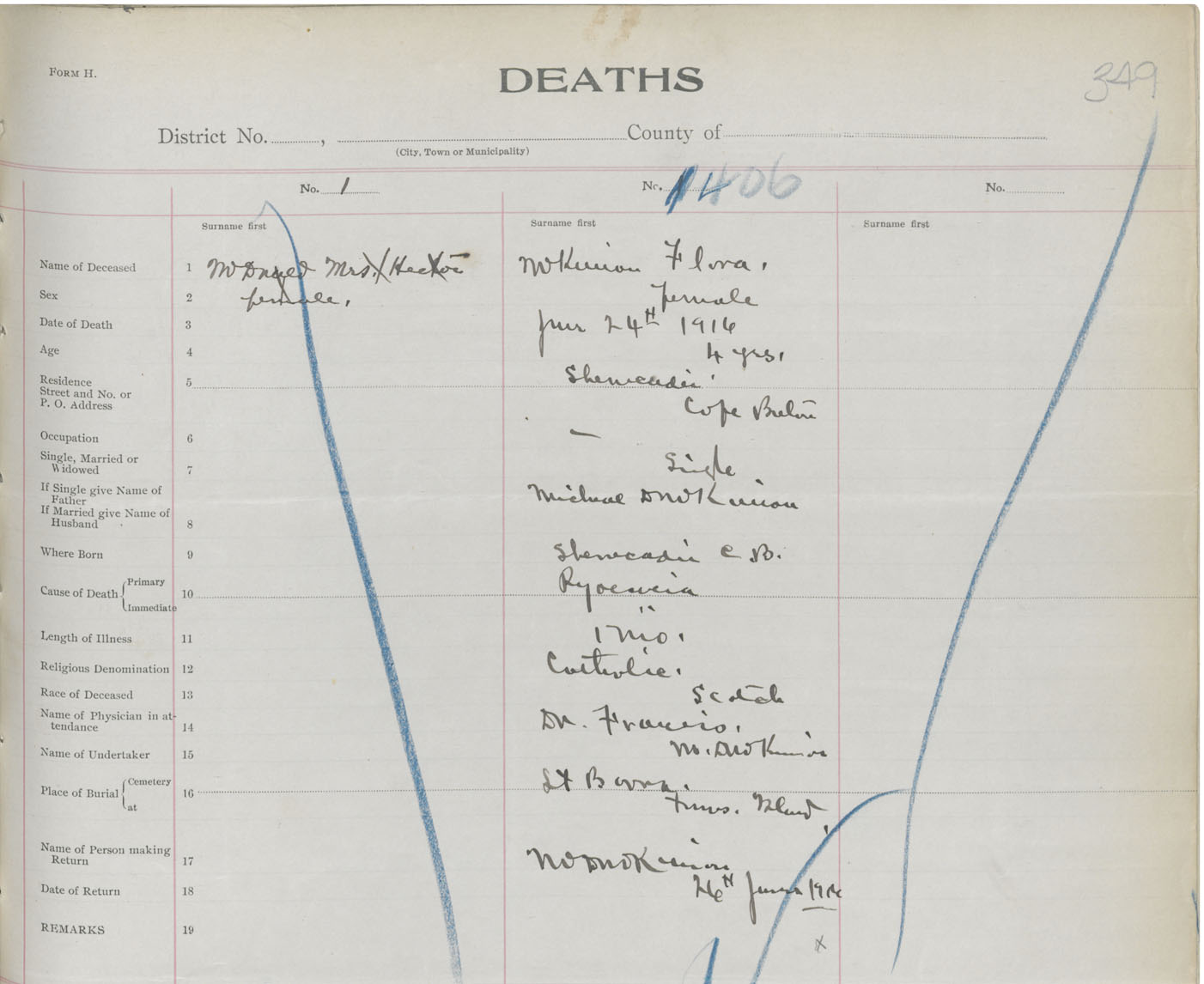 Death Registration: Year: 1916 book: 28 page: 349 number: 1406