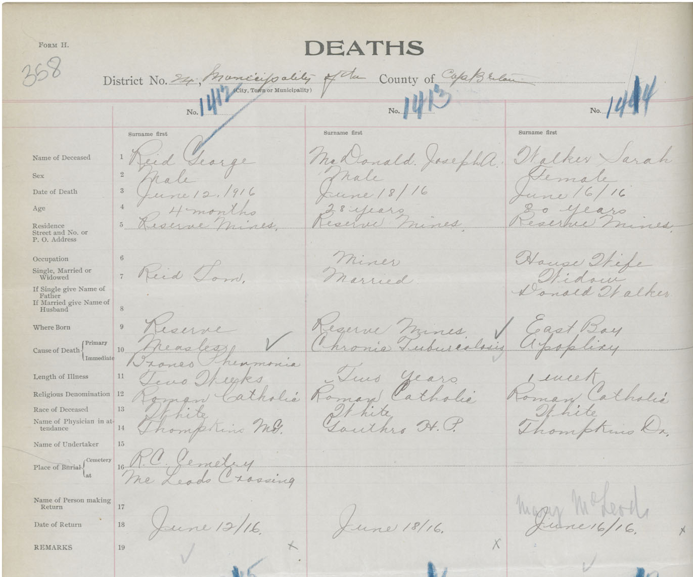 Death Registration: Year: 1916 book: 28 page: 358 number: 1414