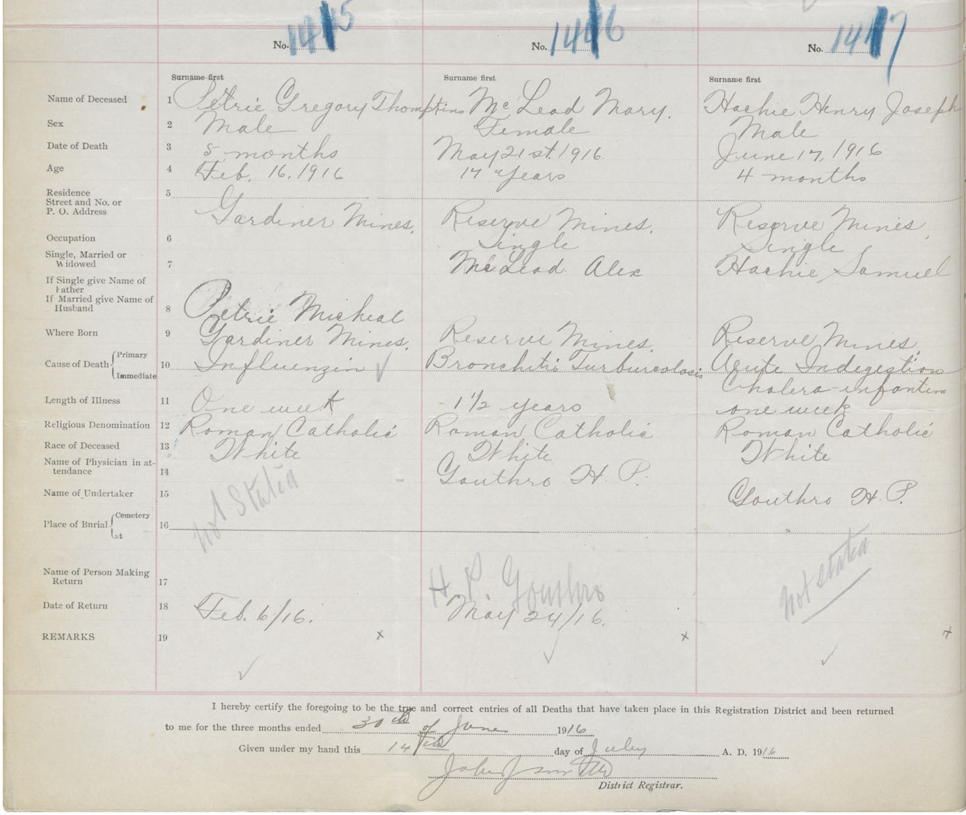 Death Registration: Year: 1916 book: 28 page: 358 number: 1417