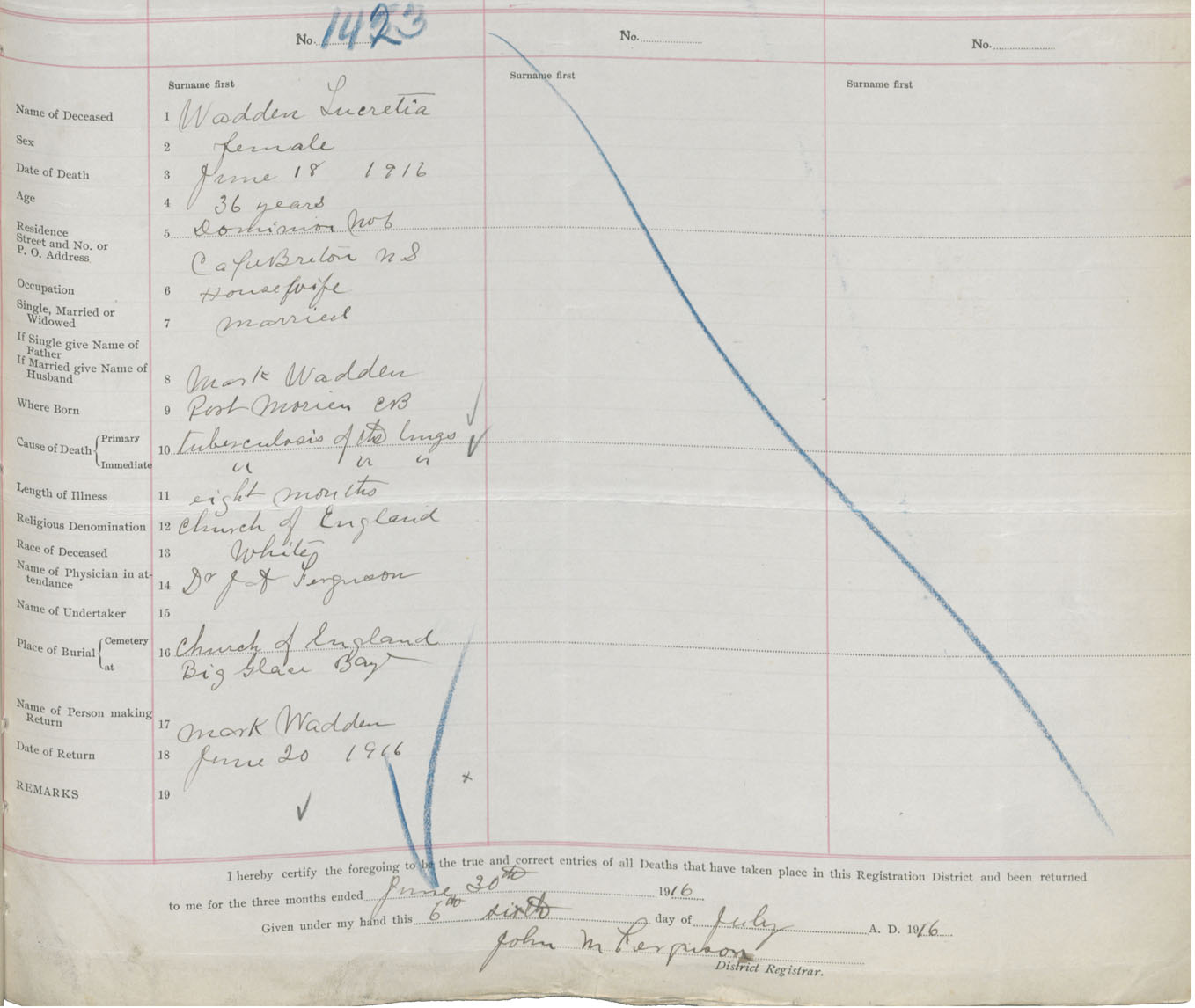 Death Registration: Year: 1916 book: 28 page: 361 number: 1423