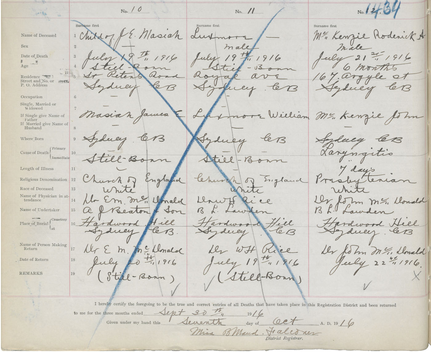 Death Registration: Year: 1916 book: 28 page: 364 number: 1434