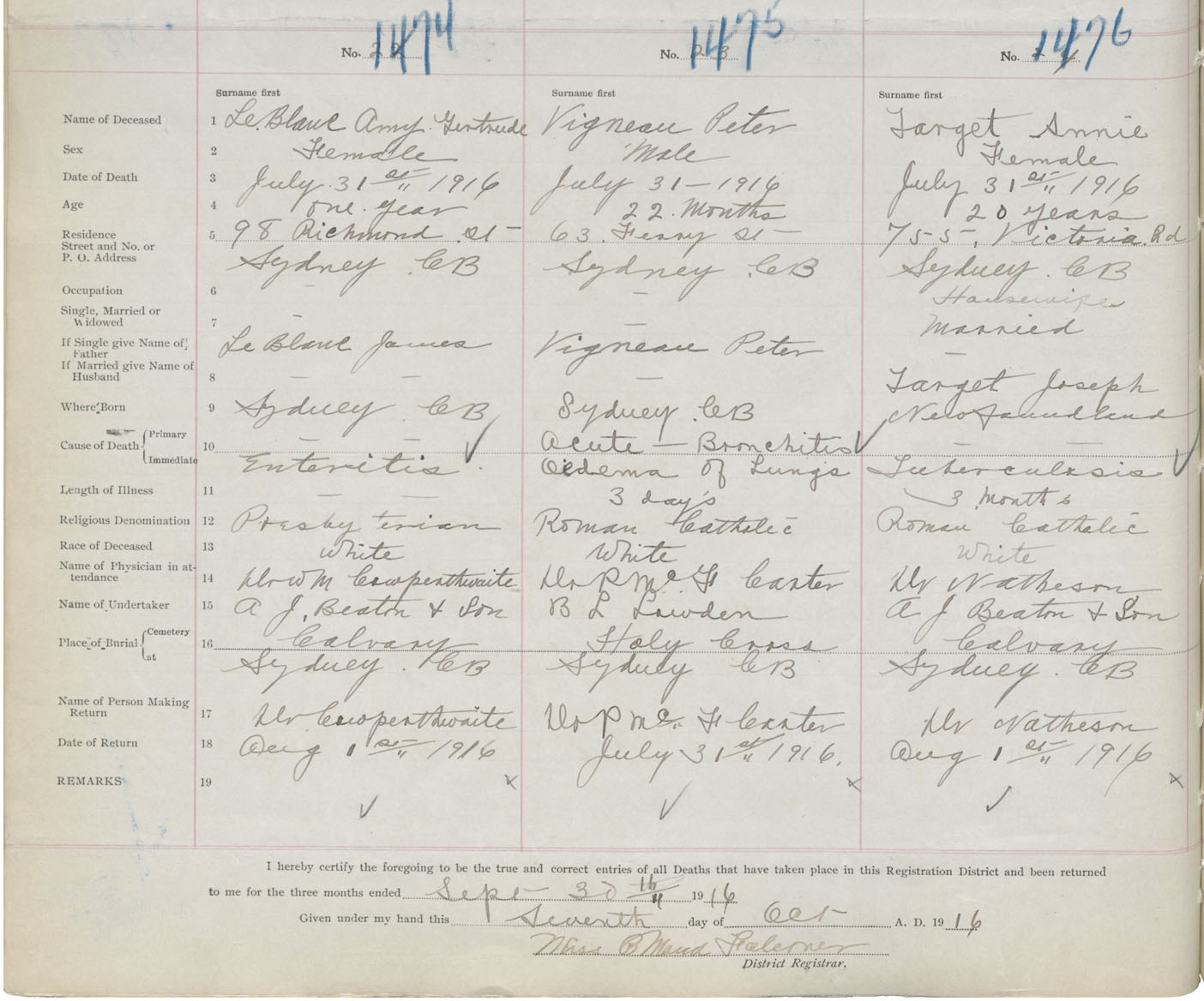 Death Registration: Year: 1916 book: 28 page: 366 number: 1476