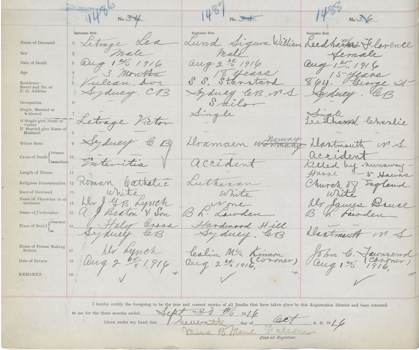 Death Registration: Year: 1916 book: 28 page: 368 number: 1488