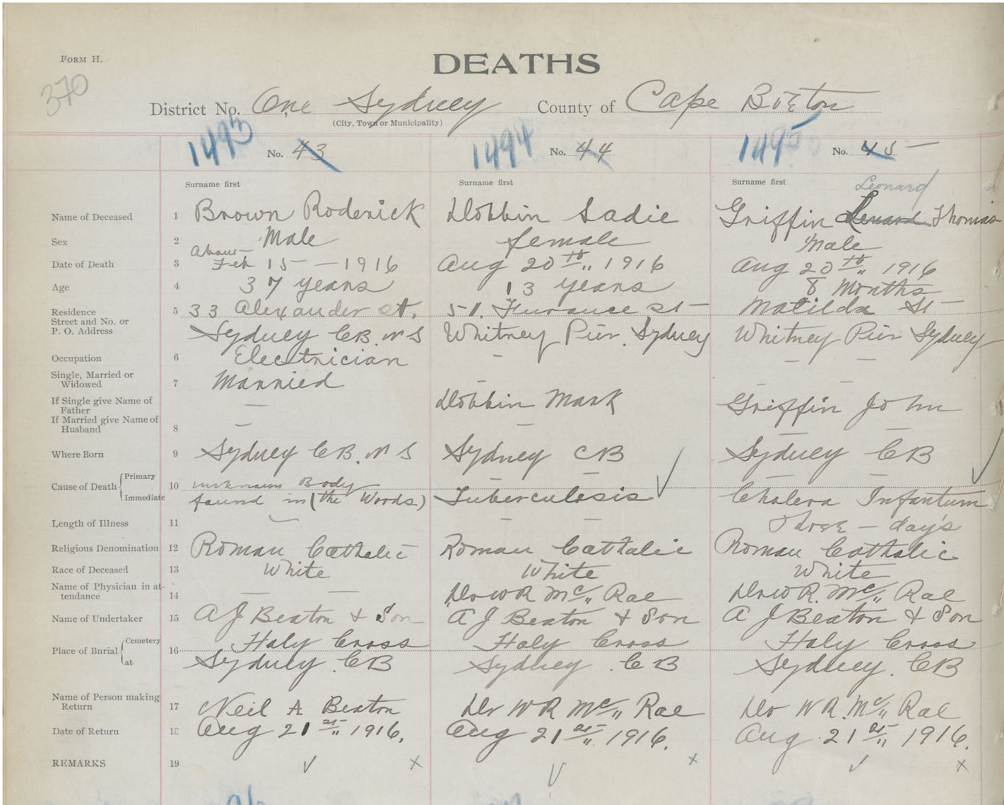 Death Registration: Year: 1916 book: 28 page: 370 number: 1495